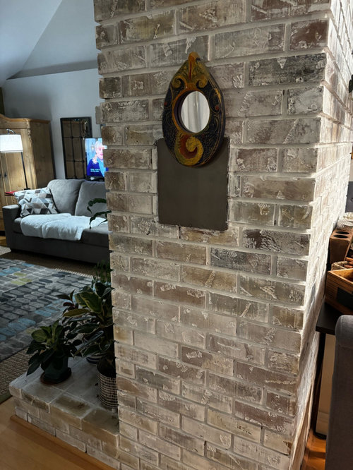 Help! I have a giant brick fireplace/room divider and I need ideas! in