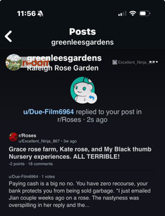 Original Authoryesterdaylast modified: 4 hours ago@Elestrial 7a it seems you have been blessed beyond measure with roses! If you join rose vendor feedback - you will learn more than you will ever care to know about the nasty vendors and all the gross with the ”lady” rose vendors , be very careful though the predators are thick! My rose garden goals brought all the creeps and I certainly was not buying the largest of orders, but bought 24 (greater then half of the varieties picked by Jian as she knew my goals and so I trusted she knew which would be best for our zone/ my small upick event goals) all her choosing taking place while I walked around all happy hippy, a little shocked at her ”garden” so again only 24, but $40 per from the import scammer my black thumb nursery and she pawned off 4 earth angels😂😂😂SHE GOT ME GOOD- karma is already working on her- I love Witherspoon roses charlotte close down) then 37 from membership and trash product scammer grace rose farm and 8 from the other import scammer kate roses! link as requested -hopefully your mind and heart will be opened just a little. Think about one of your grandmas using roses to heal through grief or cancer and they buy some bushes to try their hand at plant/ garden/ energy healing? How gross these “women” really are. How they love to hurt for personal gain and then the glitter poppers standing firm on another human’s practices🤯 The scam/ hurt cycle continues while those women watch the yous of the internet pop glitter in their victims’ eyes but hey you got a refund 🎉https://youtube.com/shorts/RngpQ5yVToI?si=DGiXVgukXZ4zMLtA