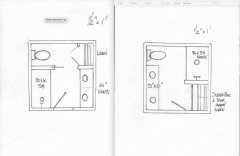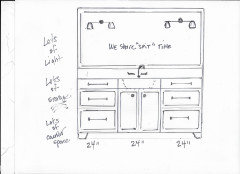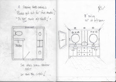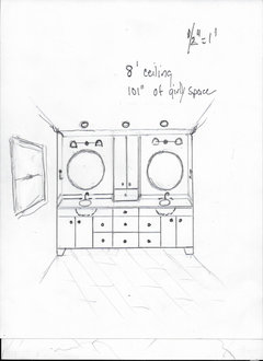 You can build storage, seating and more into the area between vanity or pedestal sinks