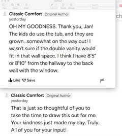 New double vanities add counter space, storage and style to these remodeled bathrooms