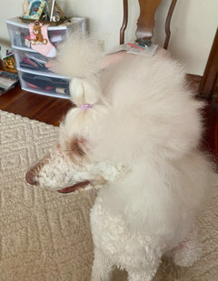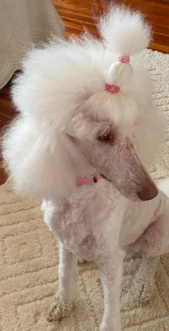 Kitty -- A few weeks ago I saw that the Palace of Versailles recently acquired this snuff box that depicts the most fancifully groomed poodle I've ever seen! It immediately made me think of your Anastasia, though I realize you of course style/groom her quite differently. The little "cuffs" of fur on its legs are so funny.