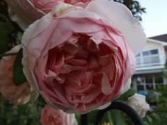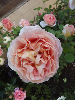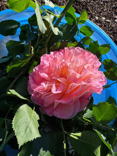 Augusta on pruning day. Say goodbye to blooms for a while? I gave this one a hard prune. Had some odd growth, so hoping the hard prune will inspire her to grow a more attractive bush.