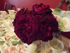 Carol, thank you about Angry Augusta. I guess other people (thanks, Kristine) like her angry, too. Those pics were late in the season, and I have never seen her so dark. She goes through all kinds of color phases, and I wish her color was more predictable. I prefer pale pink or pale apricot. Her medium pink is OK, and her sorta orange I really dislike; the dark orange is kind of shocking when you see it in person, but I do like it as long as she keeps it under control.....Do not be fearful. All will be OK for you. Check out your scrap gold and silver and get rich. Gold sold for nearly $5000 today. Back to roses....the plonk above was late in the season, and Rouge Royale darkens a lot when it is cut. I believe I waited a day before I took the above pics. I think the color difference is that I changed the light in the room.......I loved those photos of Kedra and Chloe. Such joy and fun. I hope they are doing well and going forth with all their plans. I also hope your Achilles is a lot better and you're feeling good. Our smog is supposed to leave tomorrow, but it's too cold to work outside at my age. Excuses, excuses. I hope this forum picks up soon. But I understand with the hideous weather in the eastern half of the US, and not much happening elsewhere, except for those lucky gardeners in California. All I can do is post photos and feed and water the birds. They do appreciate it. I think all is deserted out in the snowball, but when I fill the feeder, those little guys know immediately and start popping out and heading for the feeder. Then I break up the ice on the birdbath and fill it with clean, warmish water. They love that, too.