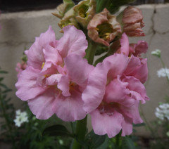 Light pink azalea type snaps, probably Madame Butterfly