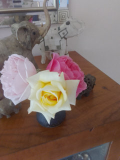 Trish - you finally got your rain! That's great! So do Irises do well for any of us? They're so lovely, and there are so many different colors. I'd love for them to do well for me. Oh, you did have some, the yellow ones, that bloomed 3 times/year!! I'm really surprised at that. I've never had an iris rebloom. Yes, if only you'd taken some. I love the pale roses you posted. :) :) It seems you love elephants!