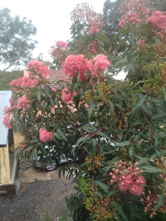 Dwarf gum, Summer Beauty, beloved by lorikeets, who strip the blooms almost as fast as they appear