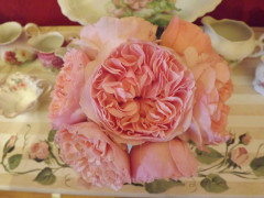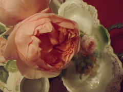 Evelyn in mid November. I can't believe how late she's blooming. I think they painted Evelyn on the antique dish (teehee).