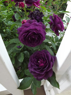 Diane - Well, we were walking in a forested area, a contained area for dogs, so the wind didn't hit us while we were in the trees. :) We get a lot of strong winds, even in the summer, but more in the winter because of the Chinooks. It makes it challenging for me to walk, for sure. Oh, that's good about the rain stopping, but ugh about the mud. Thanks about my American Magic. It was a beauty of a rose! That's just when I started realizing that my roses should be fragrant. We've never had a critter fall into one of our window wells. But then, we don't get many critters. Awww...baby rabbits...adorable!! I saved one from our dogs once. I held it in my hands and helped it get to the next yard. It was soooo sweet! My daughter and husband are like Ray...will never kill anything. I actually let spiders live in my house. lol They're good house helpers. Not that I ever seen them, but if I do, I ignore them. In your last rose picture, are the dark, Goth-type roses Ebb Tide? Soooo dark! Beautiful pics! Oh my!!! I especially love the last 3 pics of Tamora!!! Everything about it is wonderful...the color, the petals, the amount of blooms, the color of the blooms against the green leaves....