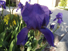 Haha, Carol, those irises are half on our property and spreading all over the place. They need dividing and no neighbor has volunteered. They're right in front, bloom about a week and half, and then spend months looking ugly with dying leaves, which nobody trims, but me. Every time I see the iris mess, I get irritated. Sorry, but it felt good to tell the truth about the blasted things--oh, yes, they are once bloomers that grow from rhizomes I can barely get my own chores done. Thank you about Evelyn and cheering me up, you doll, you. I always cut my own hair and just finished. What a whack job I did. Haven't finished the fun clean up......Edwards has sold the flavored roses for a couple of years. Don't think I'll bite. That was such an awful joke. The smog persists and our highs and lows are about the same temp, freezing. Poor birds. Two days ago, I had to start breaking ice on their birdbath. I change the water each day, so it's noticeable when things get colder. More later after all is cleaned up, including me.