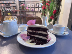My tea and cake at Extraordinary Desserts in San Diego. I highly recommend!