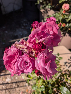Susan -- do you feel bad trimming all your roses? that very early, substantial rain woke my roses up and I'm getting so many blooms and new growth on the ones in the front yard. I already heartlessly pruned the ones in back, and they are already pushing lots of new growth. I read that someone in So Cal considers late summer their dormant period. I think I have to start thinking that way, too. For the rest of you -- we've had balmy, sunny weather after all the crazy rain, and at my house it's been over 80 every day this week, and on the hot cement south facing patio its been over 90. But I'm running all over a hilly campus trying to look professional and not enjoying the heat. It's still chilly at night, so still have my flannel sheets on the bed.