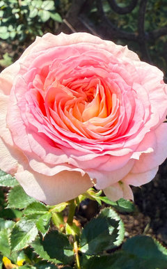 Blushing Parasol summer 2025. She is a big rose bush this winter with large green canes. She is doing well over the winter snow season. Plesant light rosy fragrance.