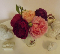 Diane - Are we thinking of the same rose? Heirloom? I didn't think Heirloom had such a full, luscious look. My goodness!!!! Well, the house repairs have slowly started. They've been drying out the area with heaters. I'm not sure what's next. Oh, your transferware is decorative. :) It sure is. :) I really love your Sisters Fairy Tale!! Dwarf Shasta Daisies look so tiny compared to mine. So cute!rosecanadian