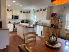 We remodeled our house in 2016. It was pretty bad before. We sold our large house (it was over near Earlywine Park) and bought this little house with over an acre. It was really bad 80's style. Not that 80's style is bad, but this was bad because it was in such horrible shape. Anyway, we paid to have the kitchen, dining, living and utility room remodeled. Also got new windows and siding--stuff like that. We ran out of money and had to do the bathrooms and bedrooms ourselves.I went with the subway tile and white cabinets because those never really go out of style, although they're not always the most stylish. The countertops are quartz and also very neutral. The island top is butcher block.