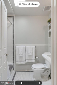 BATHROOM OF THE WEEKWhite Paint and Patterned Tile Freshen Up a 5-by-11-Foot Bathroom
