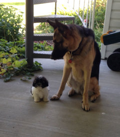 This is puppy Frank with my daughter’s GSD, Milla Jovobitch.