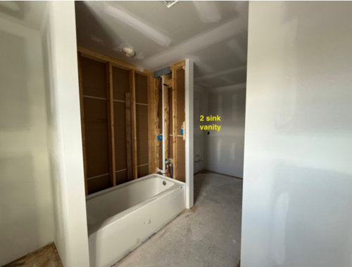 A couple in Canada remodel both rooms at once, moving a tub and installing a shower