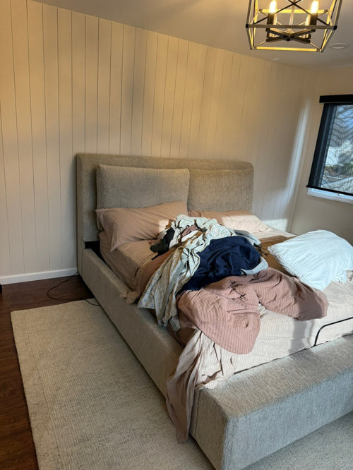 Bad remodels had managed to leave this couple cramped in an expansive bath. A redesign gave the room a luxe hotel feel
