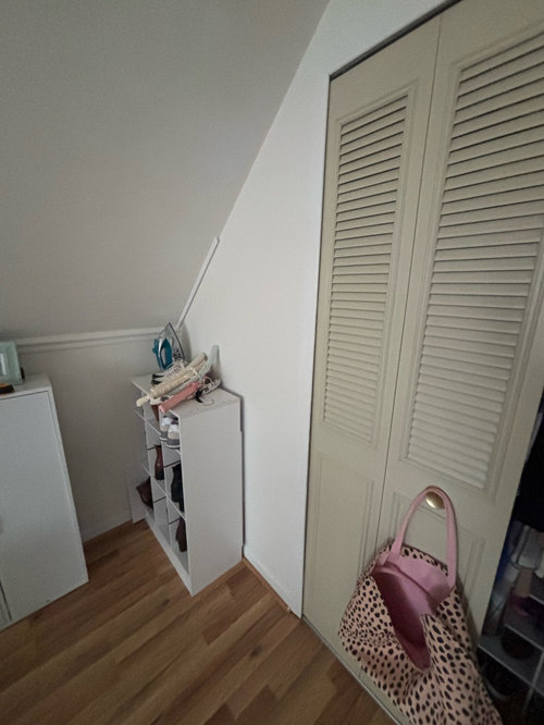 Seattle homeowners work with a design team to transform an attic closet into a bathroom with a shower and walk-in closet