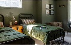 A designer uses bold green walls and playful accessories to turn a former dining room into an energetic bedroom
