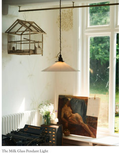 deVol MilkGlass PendantIf I need a wider spread, this might be better. It's 11 3/8"w, a wider shape (less of a narrow cone like the creamware pendant), and milk glass will spread light more.