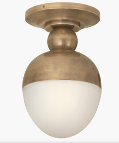 I was looking for small lights and was surprised to end up with the Visual Comfort Thomas O'Brian Clark flush light. Online it looked too big and absolutely like a boob light. In person, it was fantastic, not boobular at all, and the size made perfect sense.
