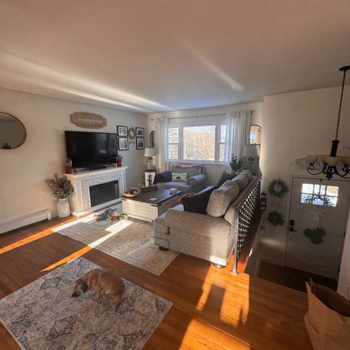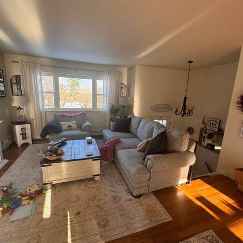Bright furnishings and a newly open floor plan give a 1964 living room suffering from an identity crisis a new look