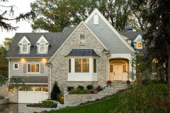 Forget one-note home exteriors. A facade that combines stone and shingle gives houses depth, character and curb appeal
