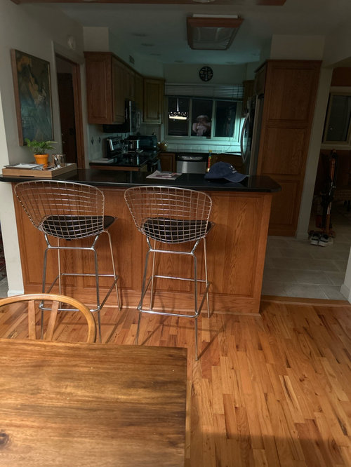 Cherry cabinets, a sleek island and a new bar area create storage, flow and style in a once-cramped 1990s space