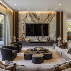A calm color scheme and an open seating area create a welcoming space made for daily living and entertaining