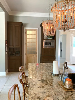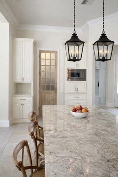 See how you can update a kitchen with new countertops, light fixtures, paint and hardware