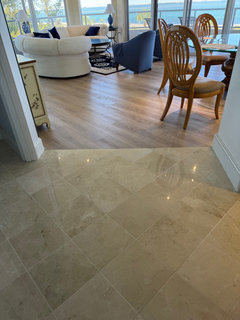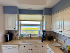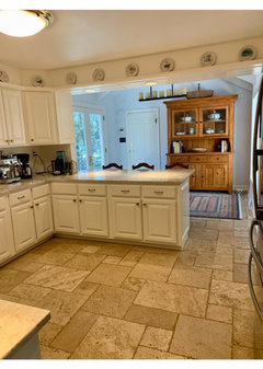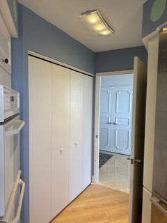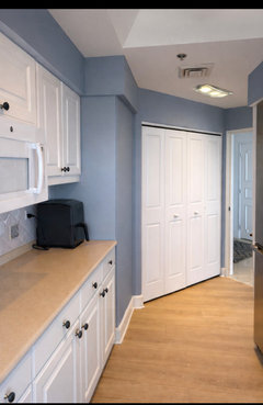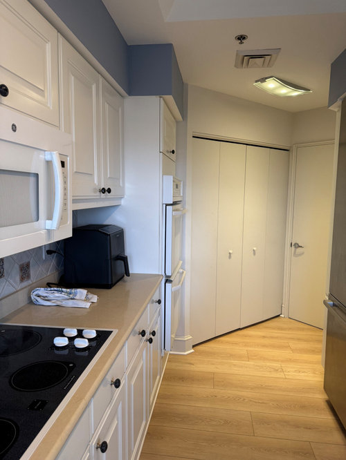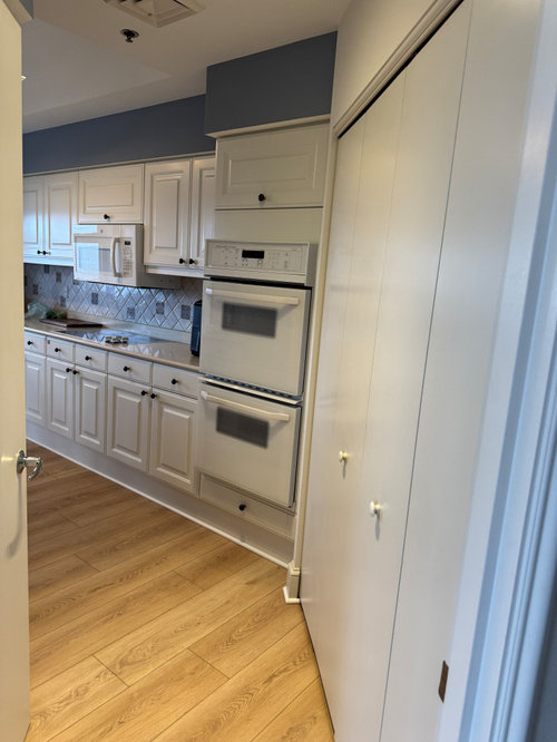 Upgraded flooring, freshly painted cabinets and a new storage compartment make this area more pleasing to use