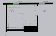 Photos of the kitchen and a crude drawing of the space are below.