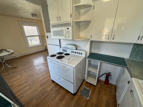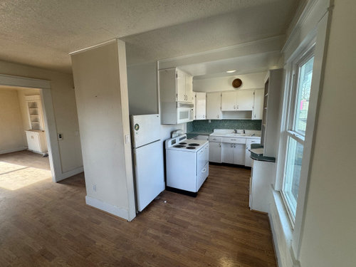 I am working on what used to be a 1907 Four Square house, before it was converted shortly before WW2 into a triplex. The second floor was made into a separate unit. Most of the walls between the original four bedrooms were opened up to make a living-dining area with a small kitchen in one corner, with only one bedroom left as a fully enclosed room.