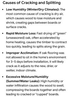 Newly installed white oak wood floors are cracked