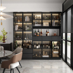 Sophistication meets durability and easy-to-clean surfaces in a dramatic style-mixing space