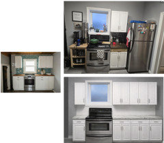 See how you can update a kitchen with new countertops, light fixtures, paint and hardware