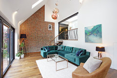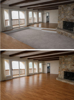 Showing the room with sunken living room and how it would look if brought up to the same level at front and back