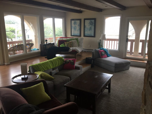 Original Author27 days agoFirst of all, I agree these are pretty crappy pictures! I'll work on that - perhaps on a not so sunny day. Not sure where to shop for furniture and decor. Definitely not Target. Although the couches are Ikea, that was mostly because it was an easy button. The coffee table is super functional so I want to keep that. Same for sideboard. I use the cedar chest for the TV stand (not pictured). That is a keeper but it can move to another room. I was thinking of getting rid of the futon and moving the couch to its place. That end of the "pit" is curved, which makes it hard to fit anything that makes sense.