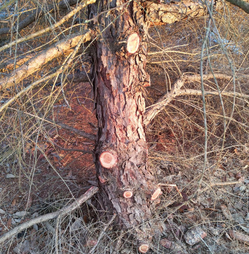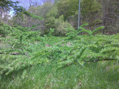 2) first time I've had to do major work on one of my larches. These lower branches were blocking my driveway. I'd clipped the ends of them back with loppers, but over time, that actually looks worse than this IMHO. It's inevitable that this kind of pruning, looks like a tree has been pruned.
