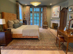 Snag a peek at a basement makeover happily inspired by a fabric swatch and done for less than $10,000