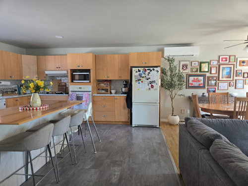 Help me turn my open concept living/dining/kitchen midcentury modern!