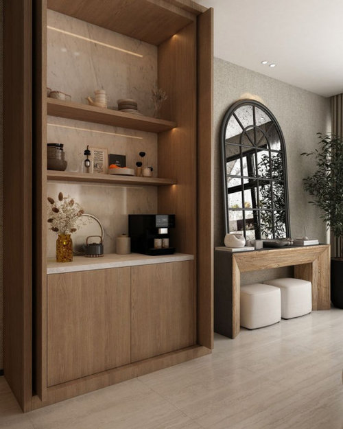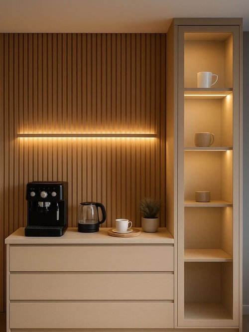 Hello, I am currently working with an interior designer on my apartment, but I have some concerns regarding the process and would appreciate a professional second opinion: Technical Feasibility: I requested some modern built-in coffee corners and wall cladding with LED profiles (as shown in the attached images). My designer claims these are 'impossible' to execute due to a lack of skilled labor. In your experience, are these designs considered difficult or standard in the current Egyptian market? Client Involvement: My designer stated that 'clients should not involve themselves in specific details or furniture layouts' and that I should only approve the final total look. Is it standard practice to exclude the client from choosing specific materials, colors, and functional layouts during the 3D phase? Space Planning: The designer made layout decisions (like the dining table placement) without prior consultation, claiming they would 'fix it later' after I expressed my surprise at the result. Is this the correct workflow? I want to ensure I am getting a home that reflects my needs, not just the designer's personal preference. Thank you for your time."