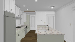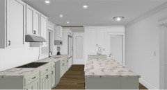 A retired couple’s remodel adds a bold island and an open great room for family time