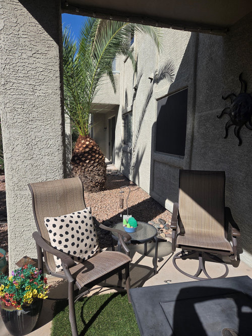 A landscape designer found on Houzz transforms a tiny space into an inviting multiuse outdoor living room