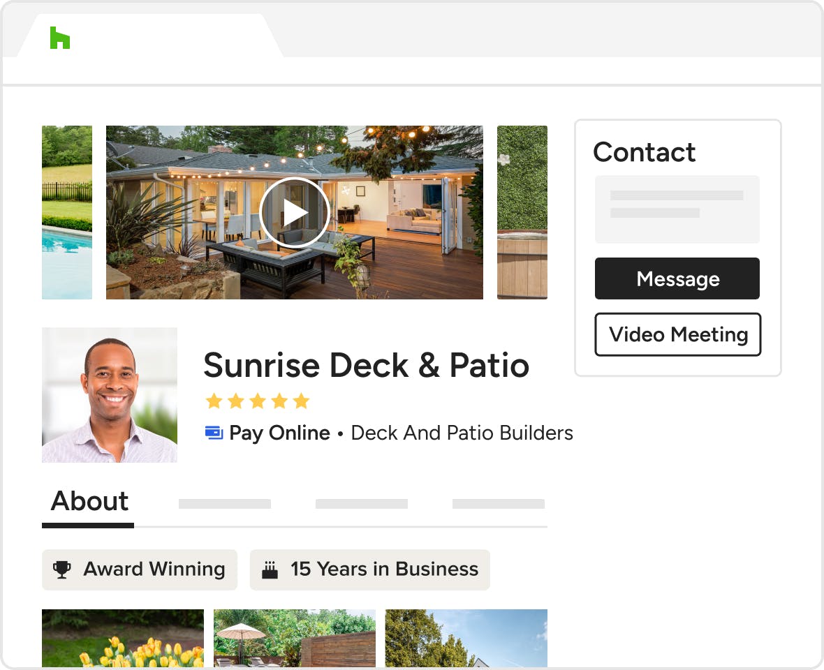 Get the #1 tool and only all-in-one solution for Patio and Deck Builders. From estimates, change orders and invoicing to lead and client management to powerful 3D modeling tools, Houzz Pro will transform how you run your business