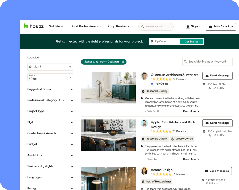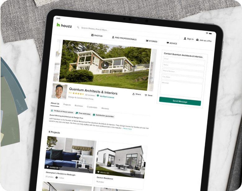 Builders, remodelers, designers, and other professionals using Houzz Pro software have tools to keep you informed and help your project stay on time and on budget. For the best experience, ask the pros you contact if they use Houzz Pro tools.