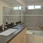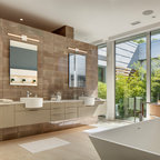 Wellnessbad aus italienischer Basaltlava kombiniert mit Caesarstone Quarz