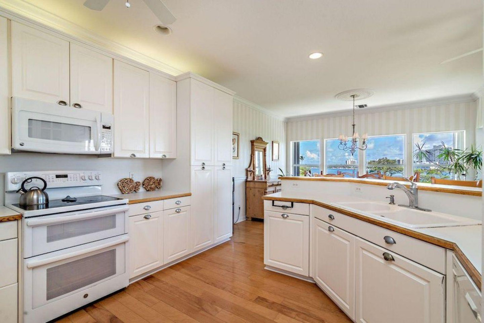 Before: This look from the former kitchen shows how the peninsula with raised countertop obscured the water views and...