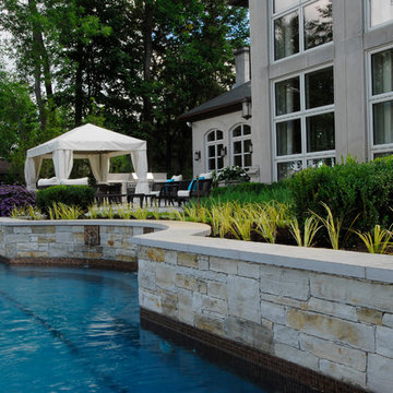 Large mountain style backyard stone and custom-shaped natural pool house photo in Philadelphia
